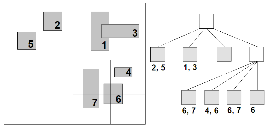 An important part of game engines and various geospatial software is the notion of overlap between objects. Objects are represented using data (in games entities have a position and a collision shape, while in databases entities are multimodal data points). We want to find collision between these objects, or to search for nearest neighors of any single object.
