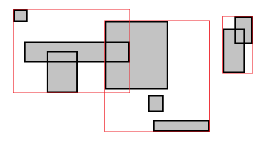To develop an intuition on how we can improve on this, take a look at the image below. Can you see how the rectangles have been placed in such a way that they naturally form two big clusters?