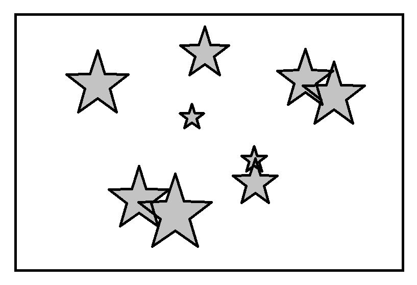 It’s important to establish the concept of bounding volumes. Take a look at the image below. If every entity in the scene is a star, then checking for star intersection would require a sophisticated intersection algorithm like Separating Axis Test.